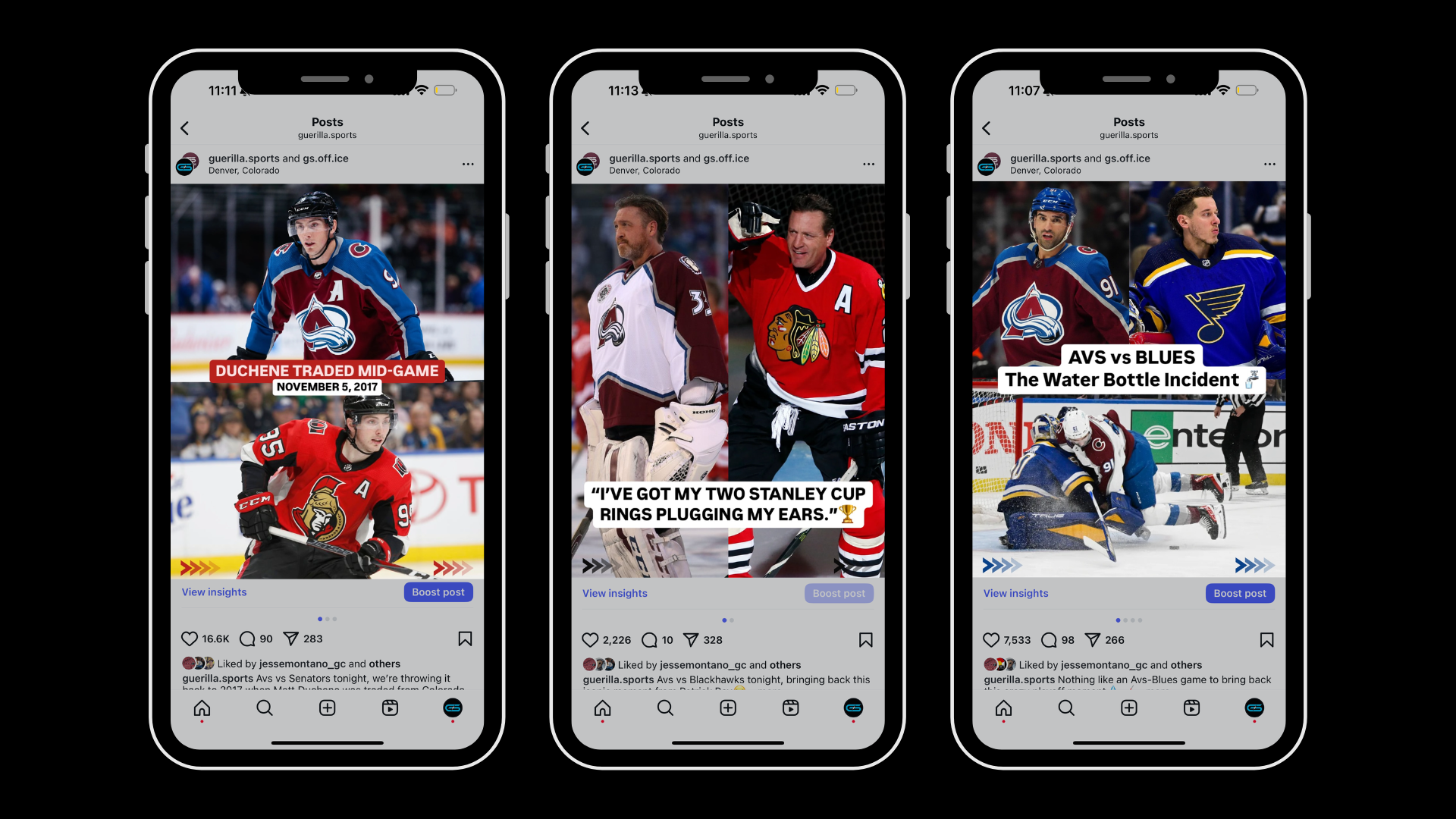 Created a nostalgic, opponent-specific gameday series that became a top-performing content pillar for Guerilla Sports. The campaign drove a 400%+ increase in Avalanche pregame reach and consistently landed in our top 10 for engagement.